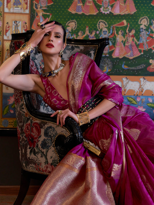 Women's Silk Blend Mauve Woven Design Designer Saree With Blouse Piece