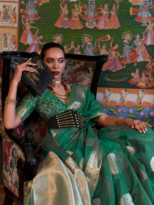 Women's Silk Blend Green Woven Design Designer Saree With Blouse Piece