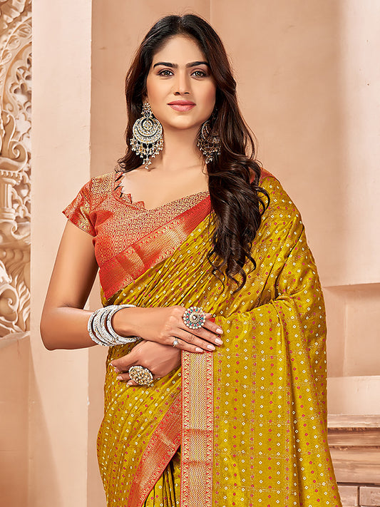 Women's Vichitra Silk Olive Embellished Designer Saree With Blouse Piece