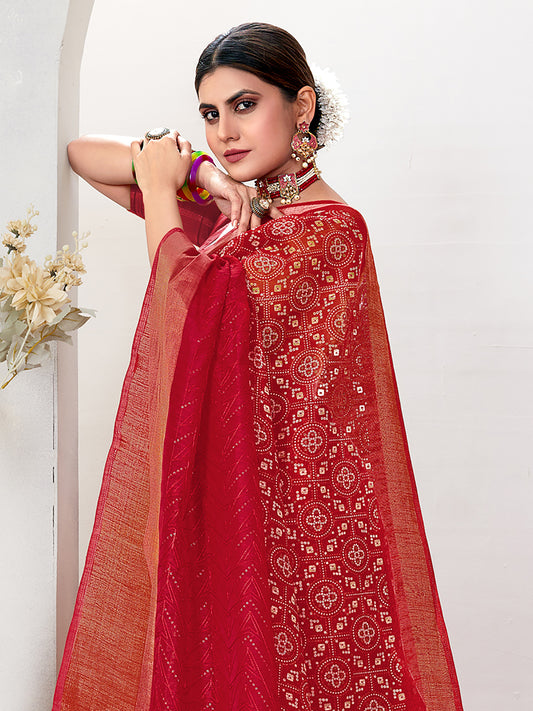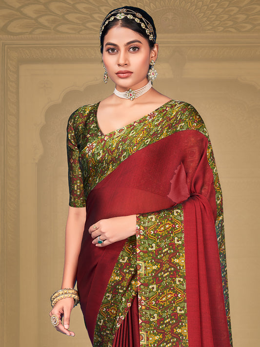 Women's Chiffon Maroon Printed Designer Saree With Blouse Piece