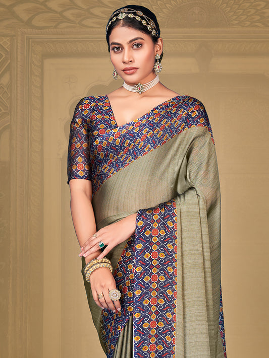 Women's Chiffon Grey Printed Designer Saree With Blouse Piece