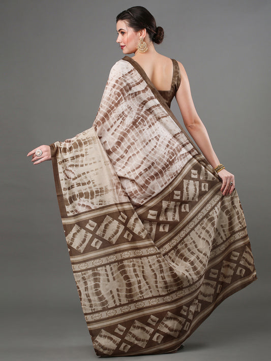 Women's Bhagalpuri Silk Beige Tie-Dye Designer Saree With Blouse Piece