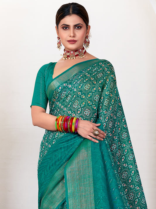 Women's Silk Blend Green Embroidered Designer Saree With Blouse Piece