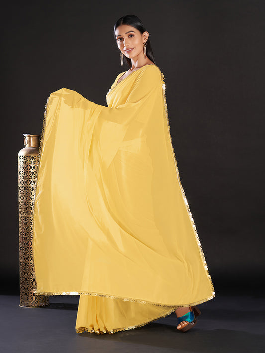 Women's Georgette Yellow Embellished Designer Saree With Blouse Piece