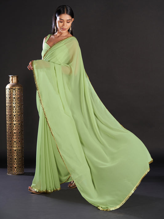 Women's Georgette Green Embellished Designer Saree With Blouse Piece