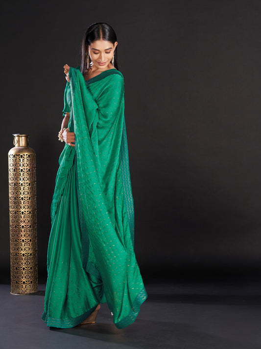Women's Satin Green Embellished Designer Saree With Blouse Piece