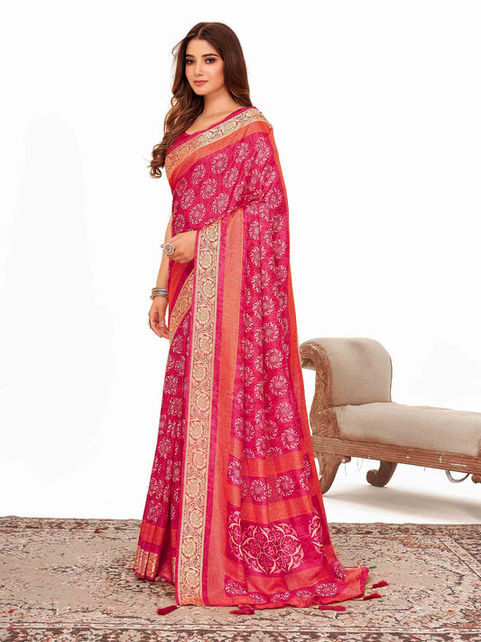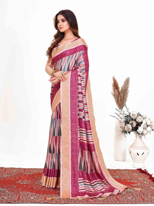 Women's Dola Silk Magenta Printed Designer Saree With Blouse Piece