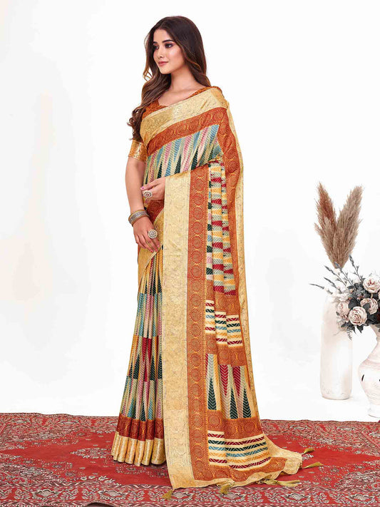 Women's Dola Silk Rust Printed Designer Saree With Blouse Piece