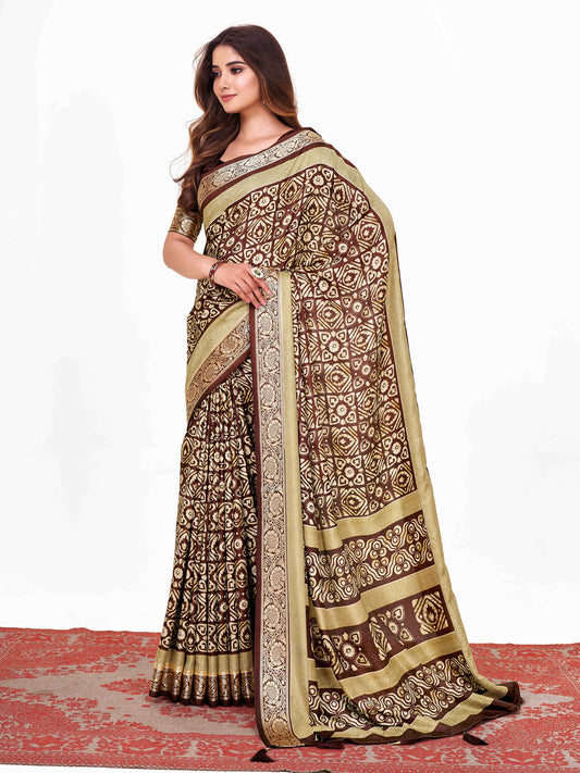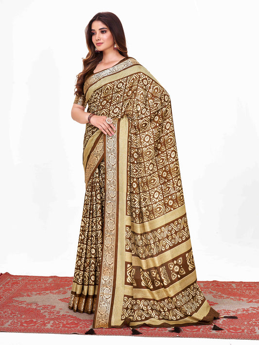 Women's Dola Silk Brown Printed Designer Saree With Blouse Piece