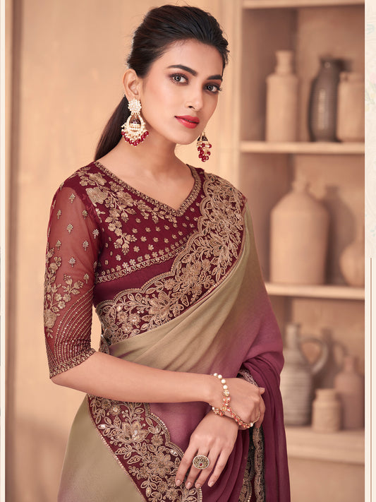 Women's Georgette Mauve Embellished Designer Saree With Blouse Piece