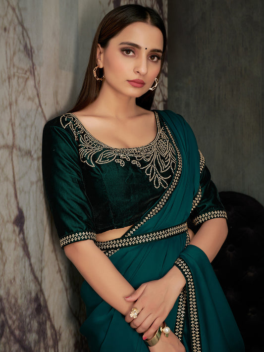 Women's Georgette Green Embellished Designer Saree With Blouse Piece