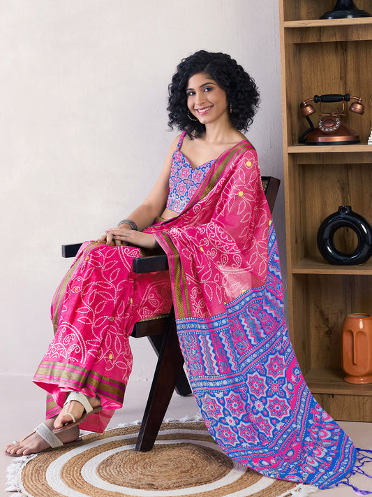 Women's Cotton Slub Pink Printed Designer Saree With Blouse Piece