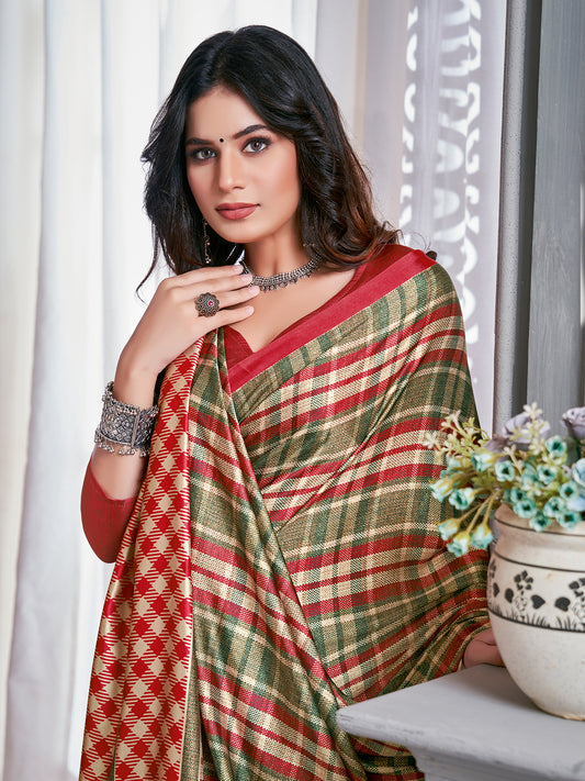 Women's Crepe Red Digital Print Celebrity Saree With Blouse Piece