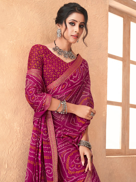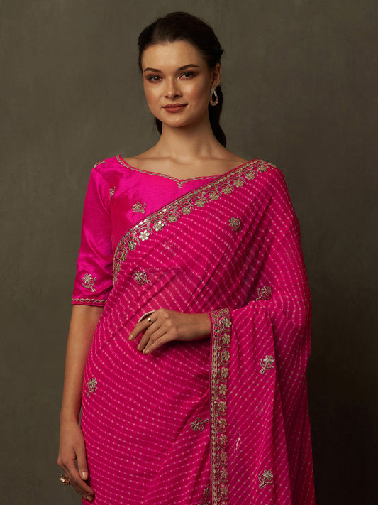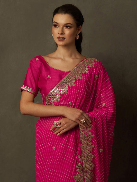Women's Chiffon Magenta Embellished Designer Saree With Blouse Piece