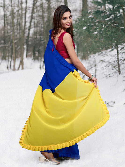 Women's Georgette Blue Embellished Celebrity Saree With Blouse Piece