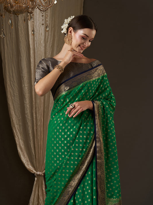 Women's Georgette Green Woven Design Designer Saree With Blouse Piece