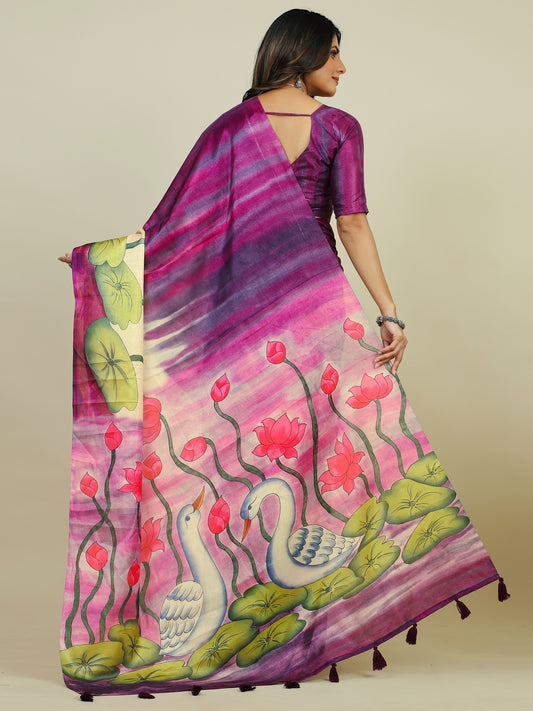 Women's Tussar Silk Purple Printed Designer Saree With Blouse Piece