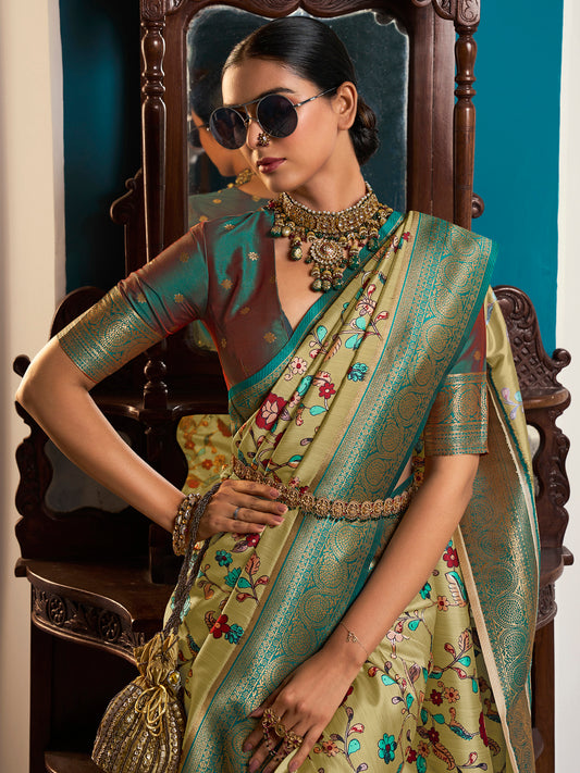 Women's Satin Silk Light Green Woven Design Designer Saree With Blouse Piece