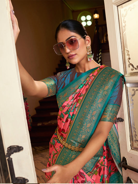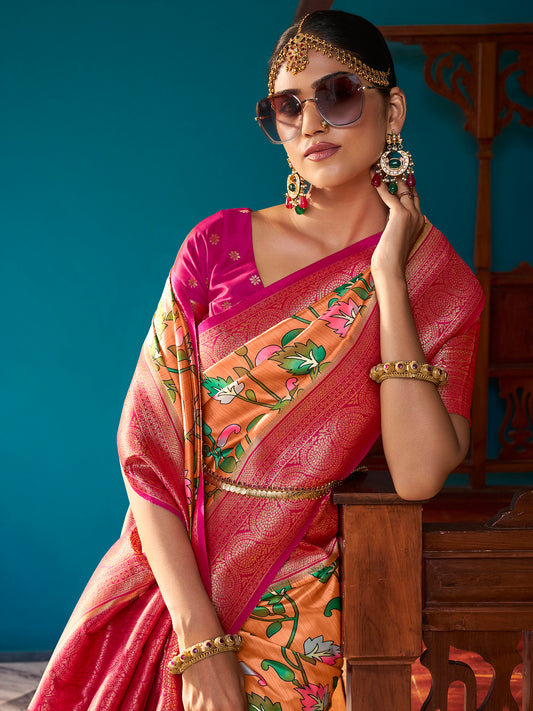 Women's Manipuri Silk Pink Digital Print Designer Saree With Blouse Piece