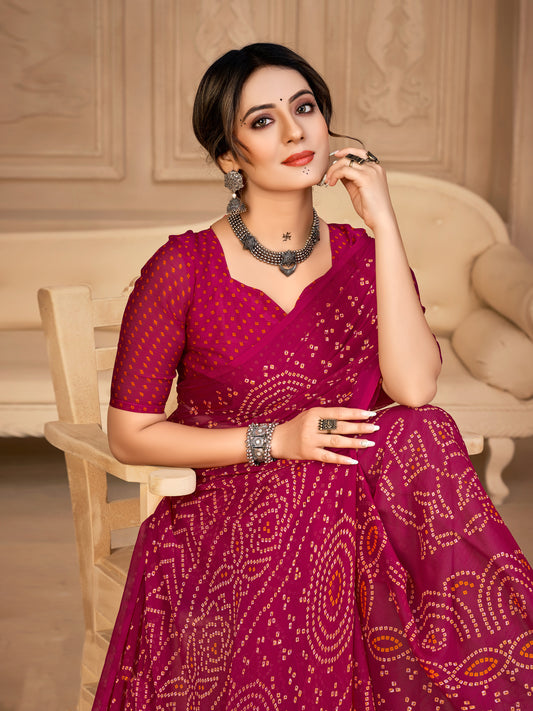 Women's Chiffon Pink Printed Designer Saree With Blouse Piece