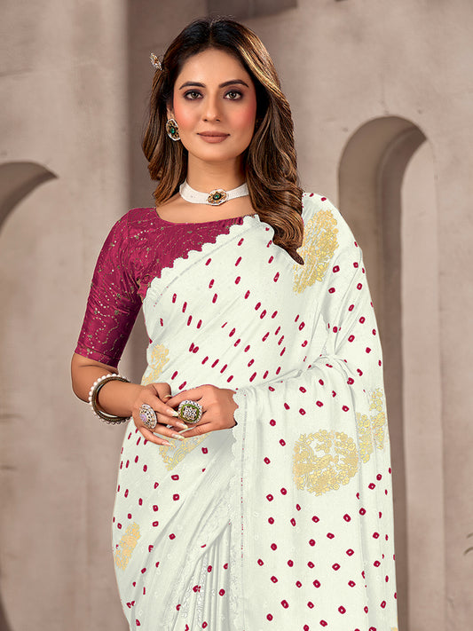 Women's Chiffon White Embellished Celebrity Saree With Blouse Piece