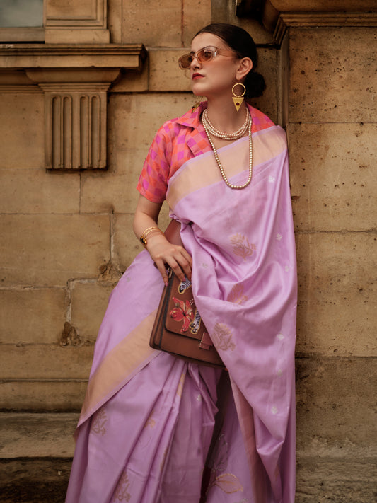 Women's Soft Silk Lavendar Woven Design Designer Saree With Blouse Piece