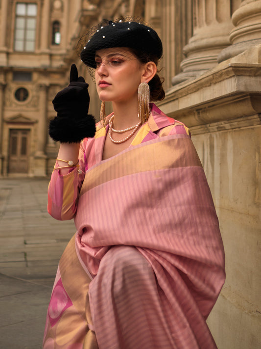 Women's Silk Blend Pink Woven Design Designer Saree With Blouse Piece