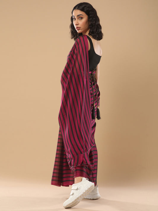 Women's Georgette Purple Solid Designer Saree With Blouse Piece