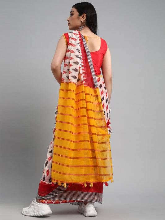 Women's Georgette Yellow Woven Design Celebrity Saree With Blouse Piece