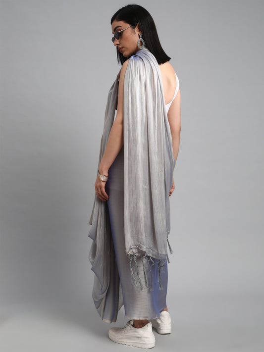 Women's Poly Georgette Grey Solid Designer Saree With Blouse Piece
