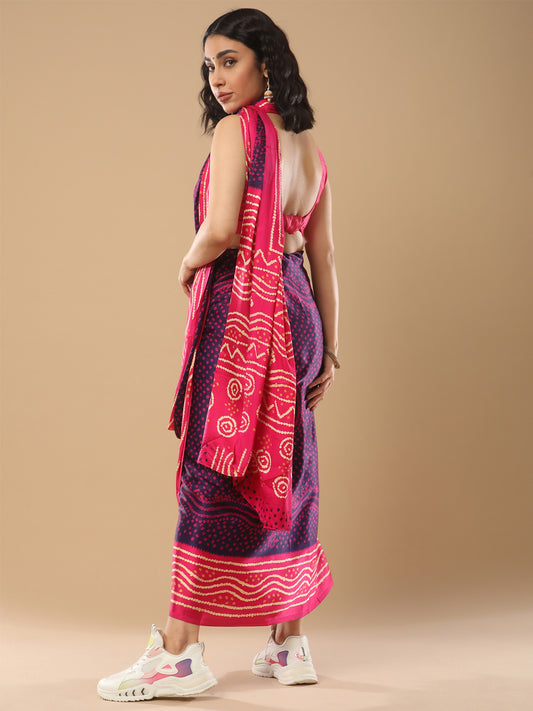 Women's Satin Silk Purple Printed Designer Saree With Blouse Piece