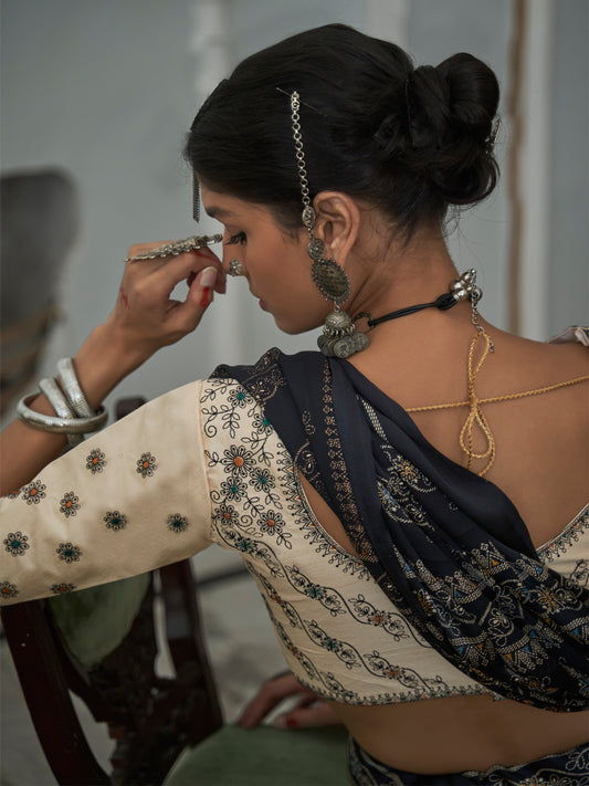Women's Silk Blend Cream Woven Design Celebrity Saree With Blouse Piece