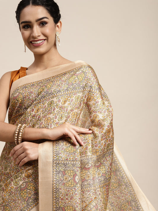 Women's Khadi Silk Yellow Printed Celebrity Saree With Blouse Piece