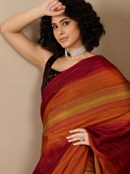 Women's Poly Georgette Rust Solid Designer Saree With Blouse Piece