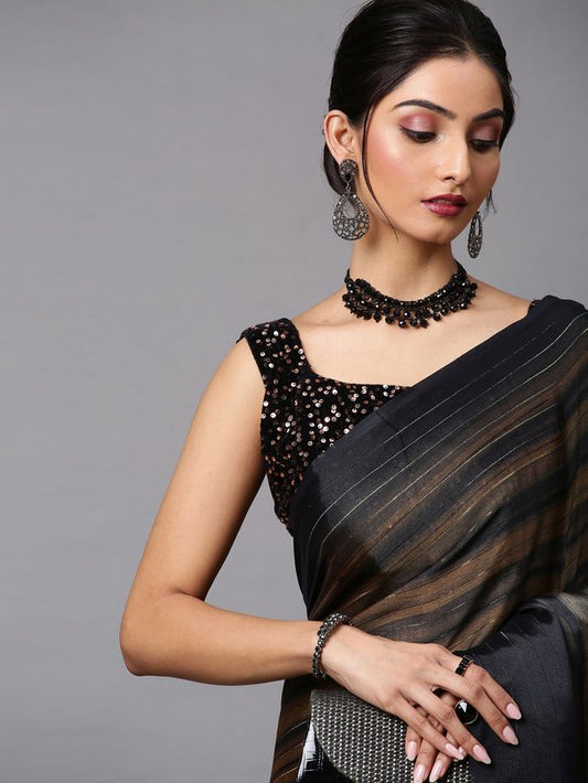 Women's Modal Black Woven Design Woven saree With Blouse Piece