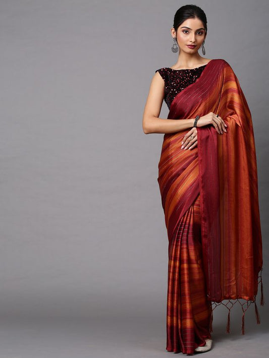 Women's Linen Maroon Woven Design Woven saree With Blouse Piece