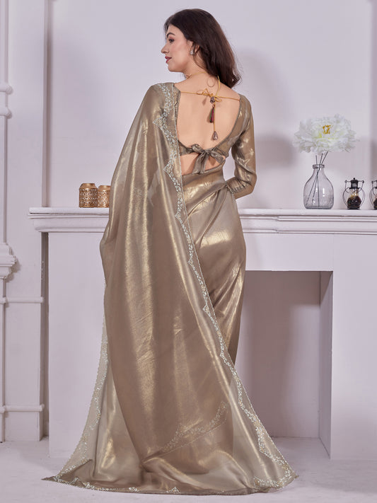 Women's Organza Bronze Embellished Designer Saree With Blouse Piece
