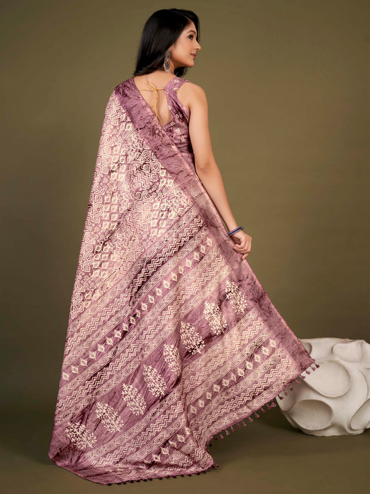 Women's Manipuri Silk Mauve Printed Designer Saree With Blouse Piece