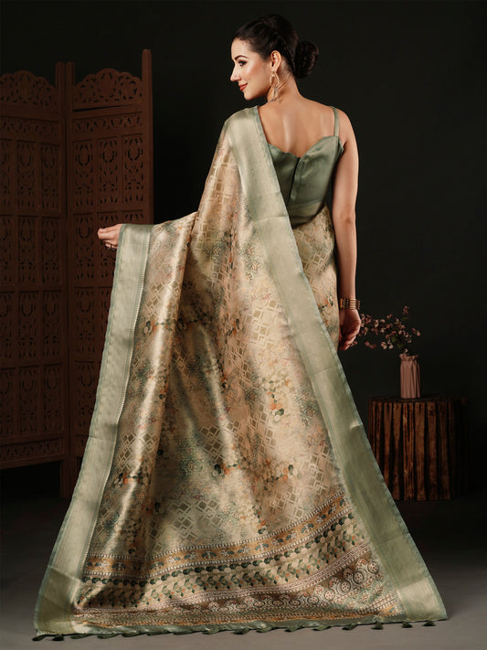 Women's Banarasi Silk Beige Printed Designer Saree With Blouse Piece