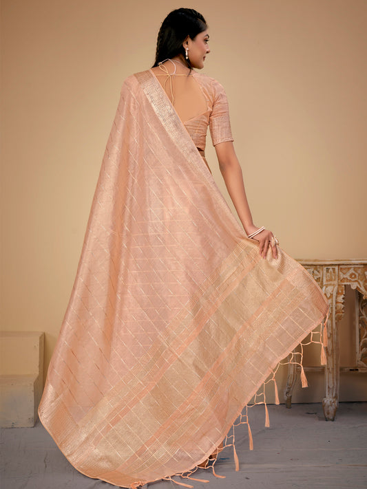 Women's Cotton Silk Peach Woven Design Designer Saree With Blouse Piece