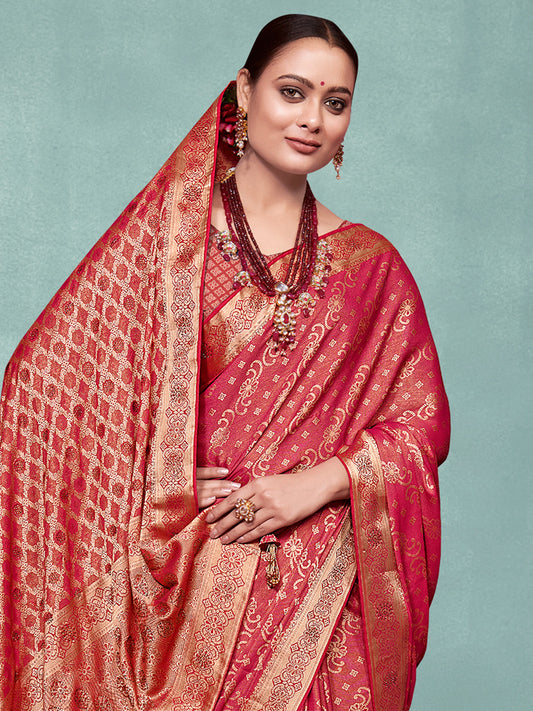 Women's Pure Silk Red Woven Design Designer Saree With Blouse Piece