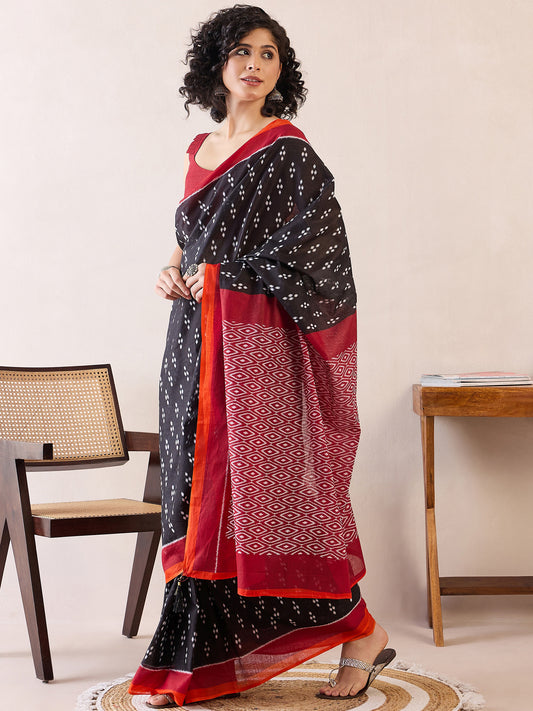 Women's Cotton Black Printed Ready to Wear With Blouse Piece