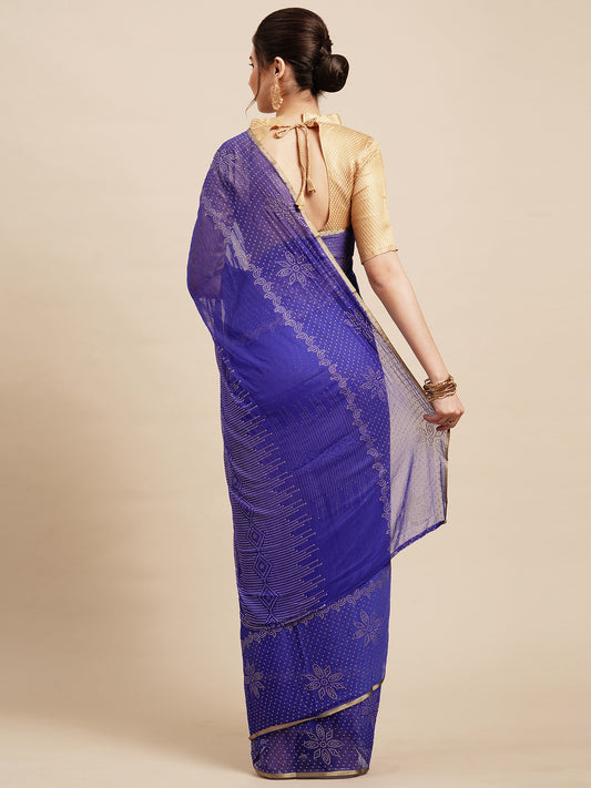 Women's Chiffon Blue Embellished Designer Saree With Blouse Piece