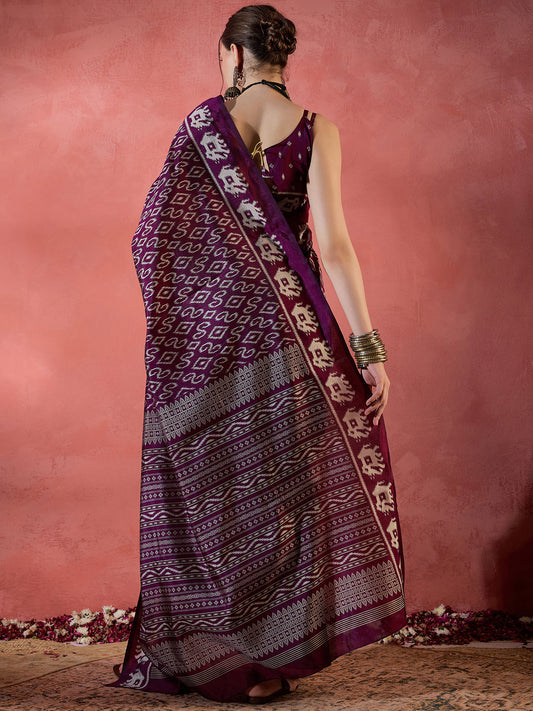 Women's Silk Blend Purple Printed Designer Saree With Blouse Piece