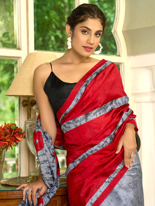 Women's Bhagalpuri Silk Red Printed Designer Saree With Blouse Piece