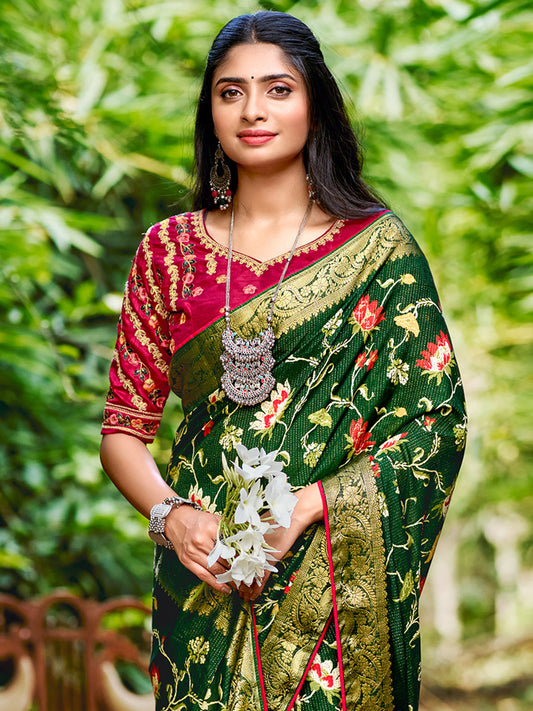 Women's Soft Silk Green Woven Design Designer Saree With Blouse Piece