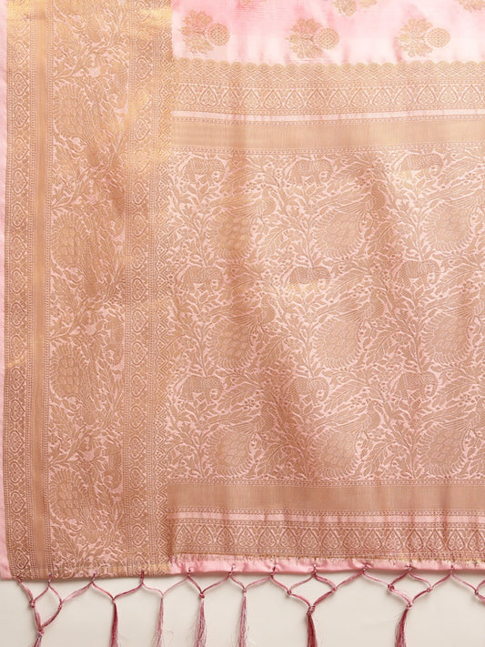 Women's Silk Cotton Pink Woven Design Woven saree With Blouse Piece