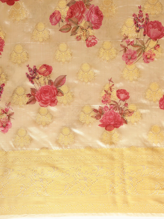 Dhiyona RV Women's Luxurious Banarasi Silk Digital Print Saree with Zari Woven Rich Pallu With Blouse ( KVD1904 )