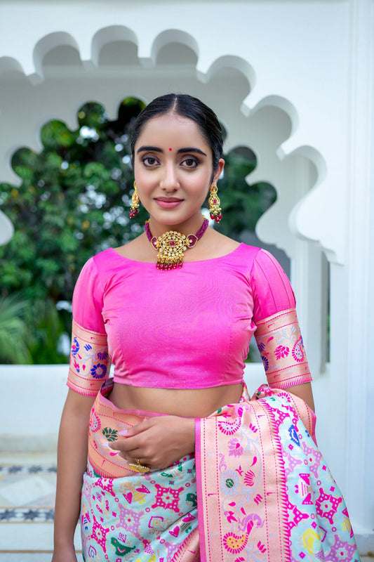 Women Paithani Isha Baby Pink Saree With Unstiched Blouse