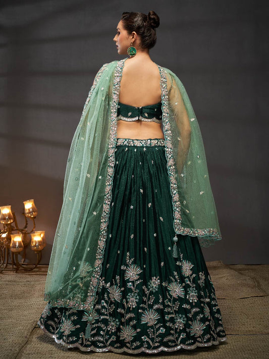 Women Green Pure Chiffon Sequins embroidery Lehenga choli & Dupatta